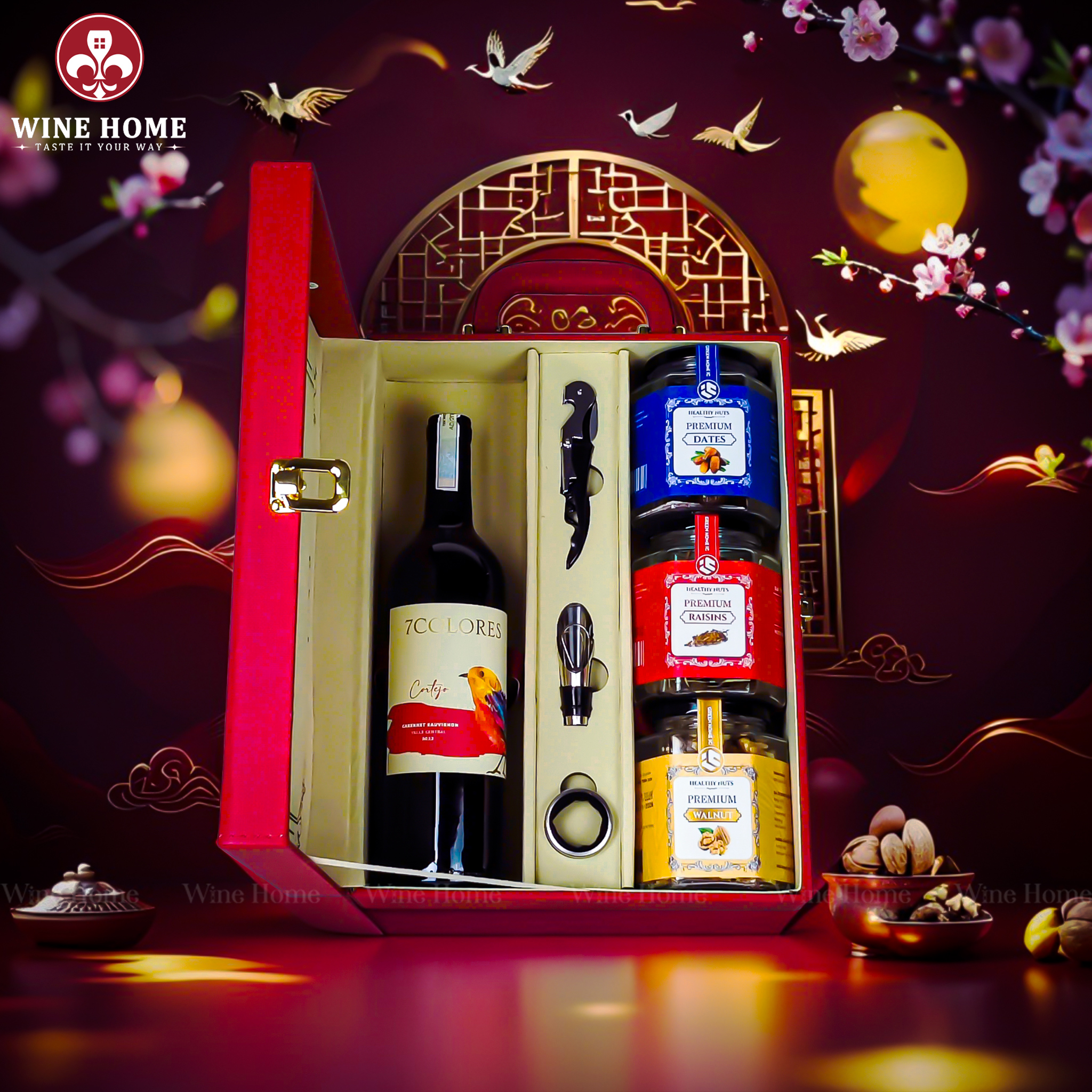 Hộp Quà Tết 2026 – Hộp Da Đỏ Quai Xách Dọc bao gồm