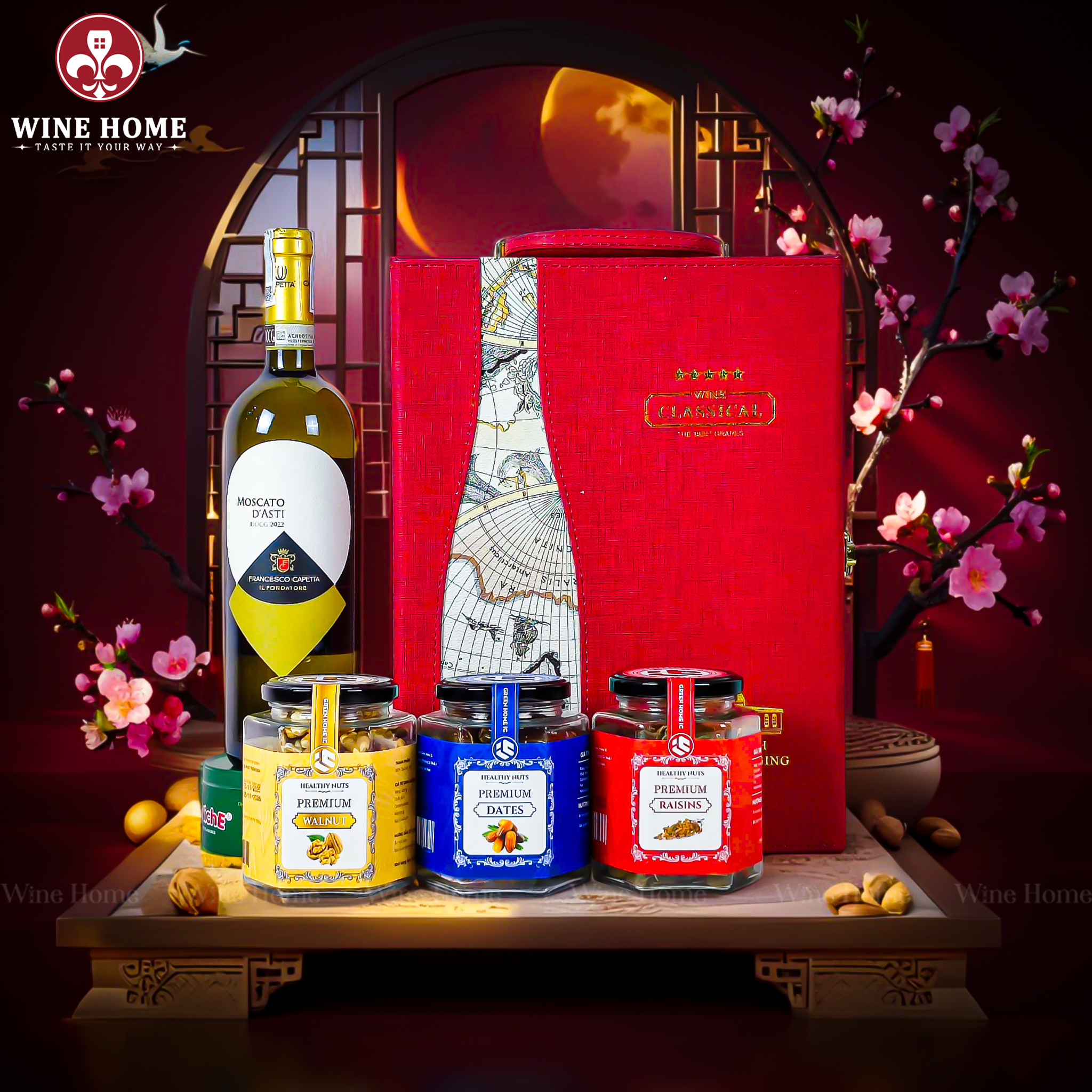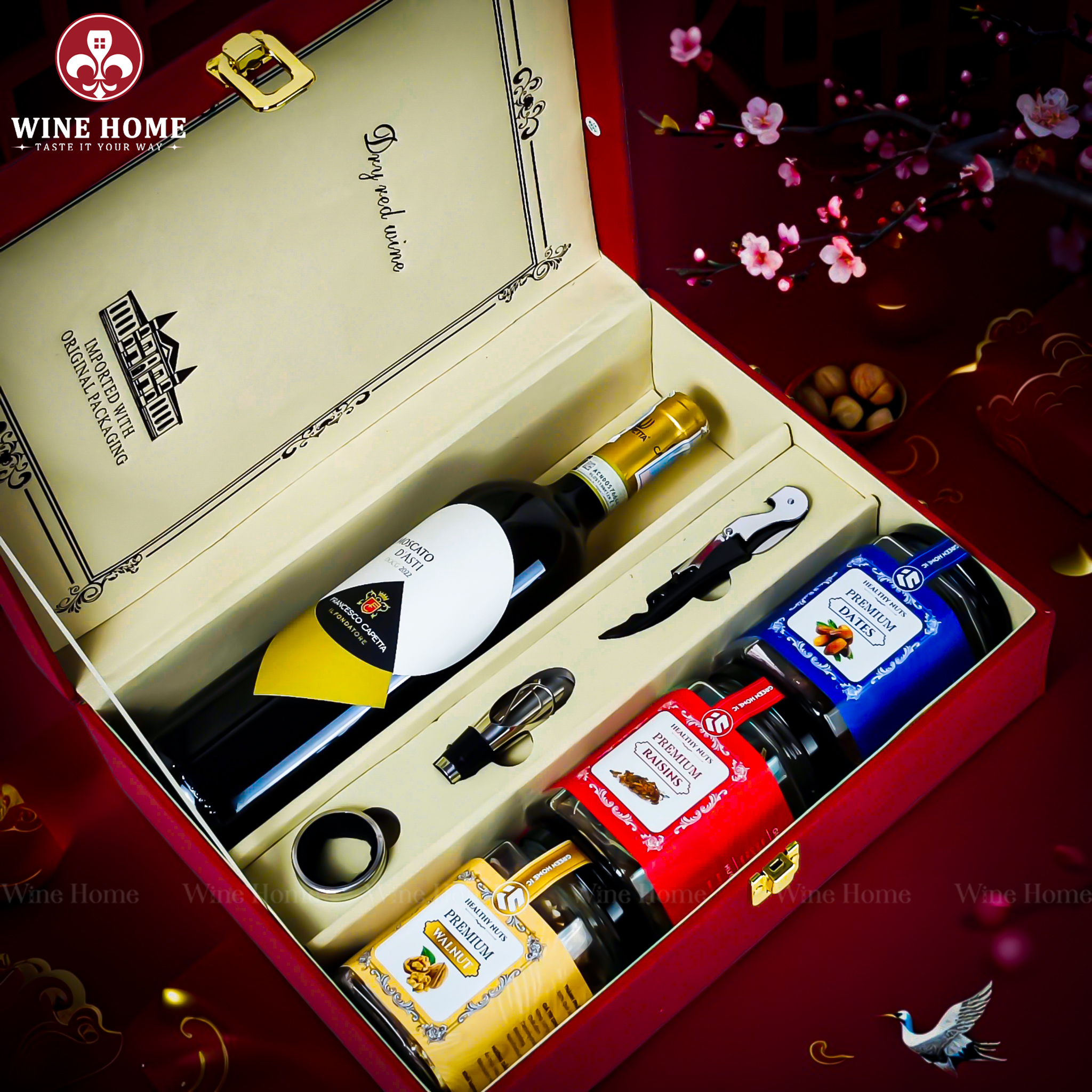 Hộp Quà Tết 2026 – Hộp Da Đỏ Quai Xách Dọc bao gồm