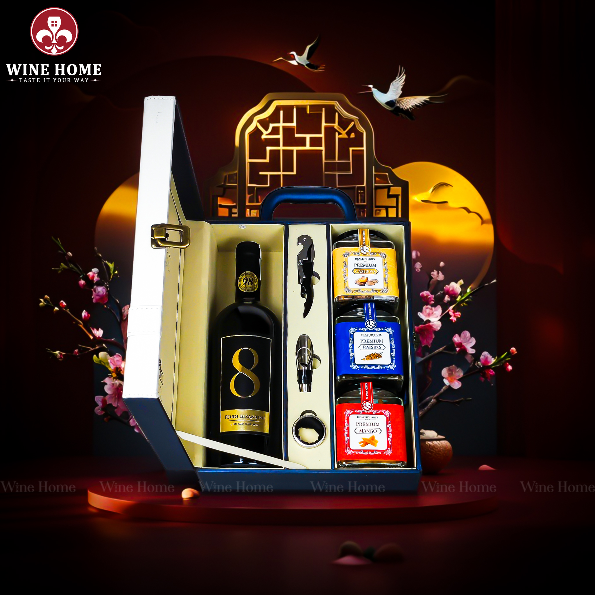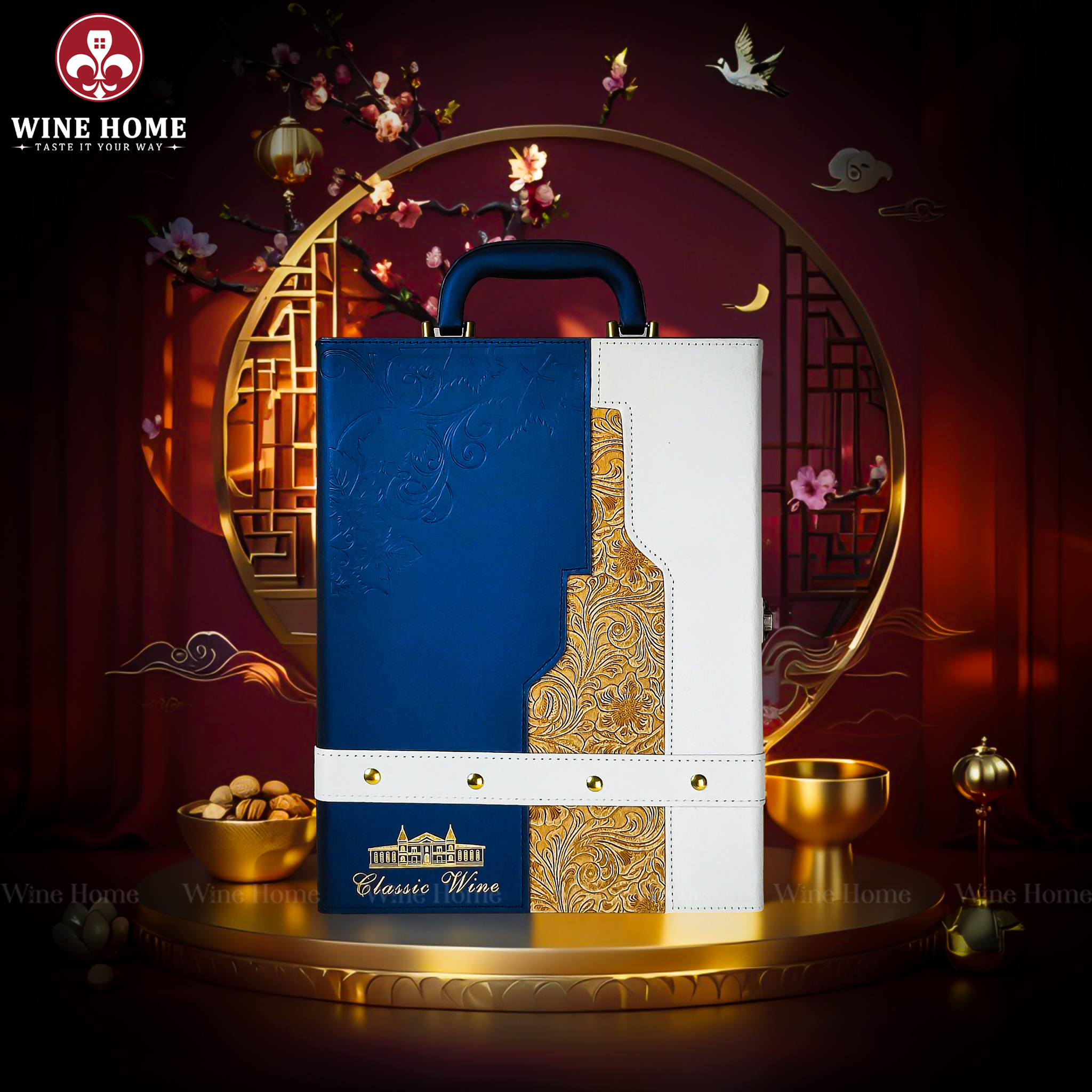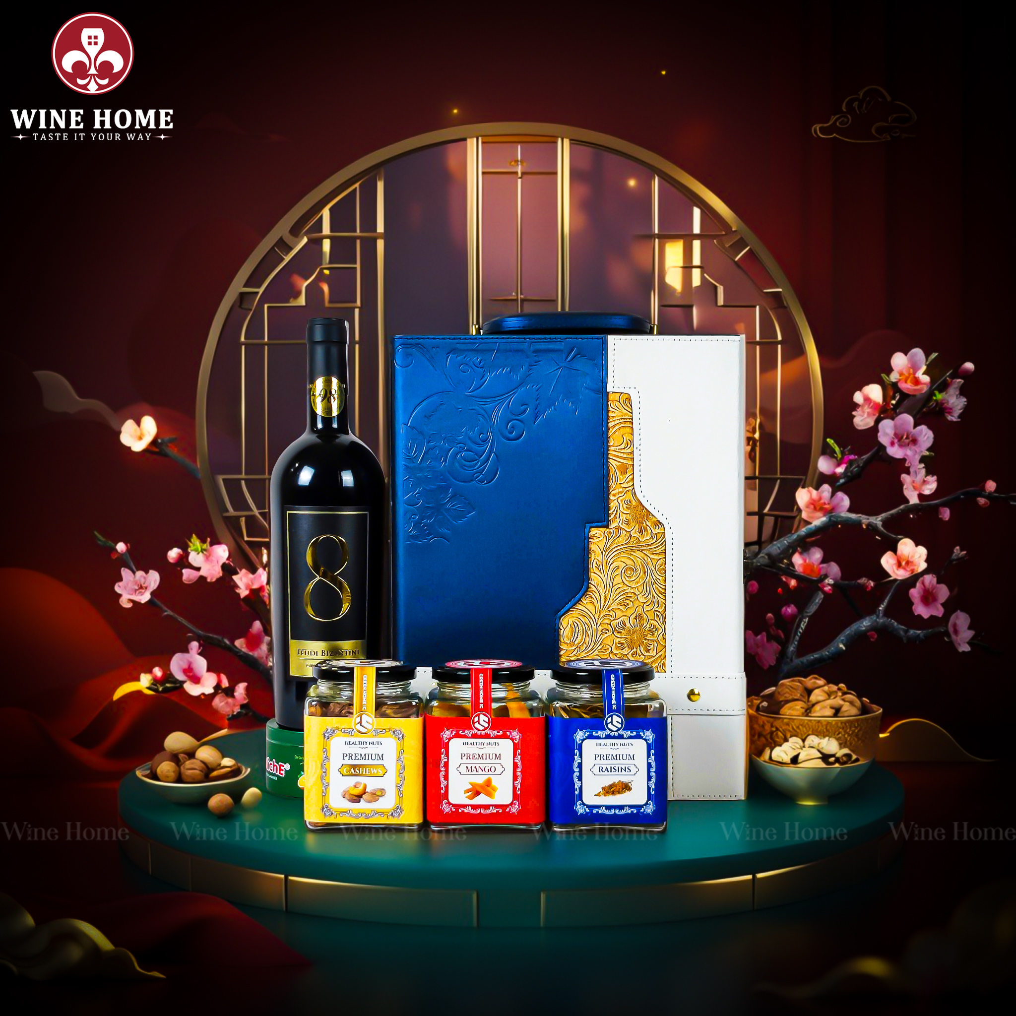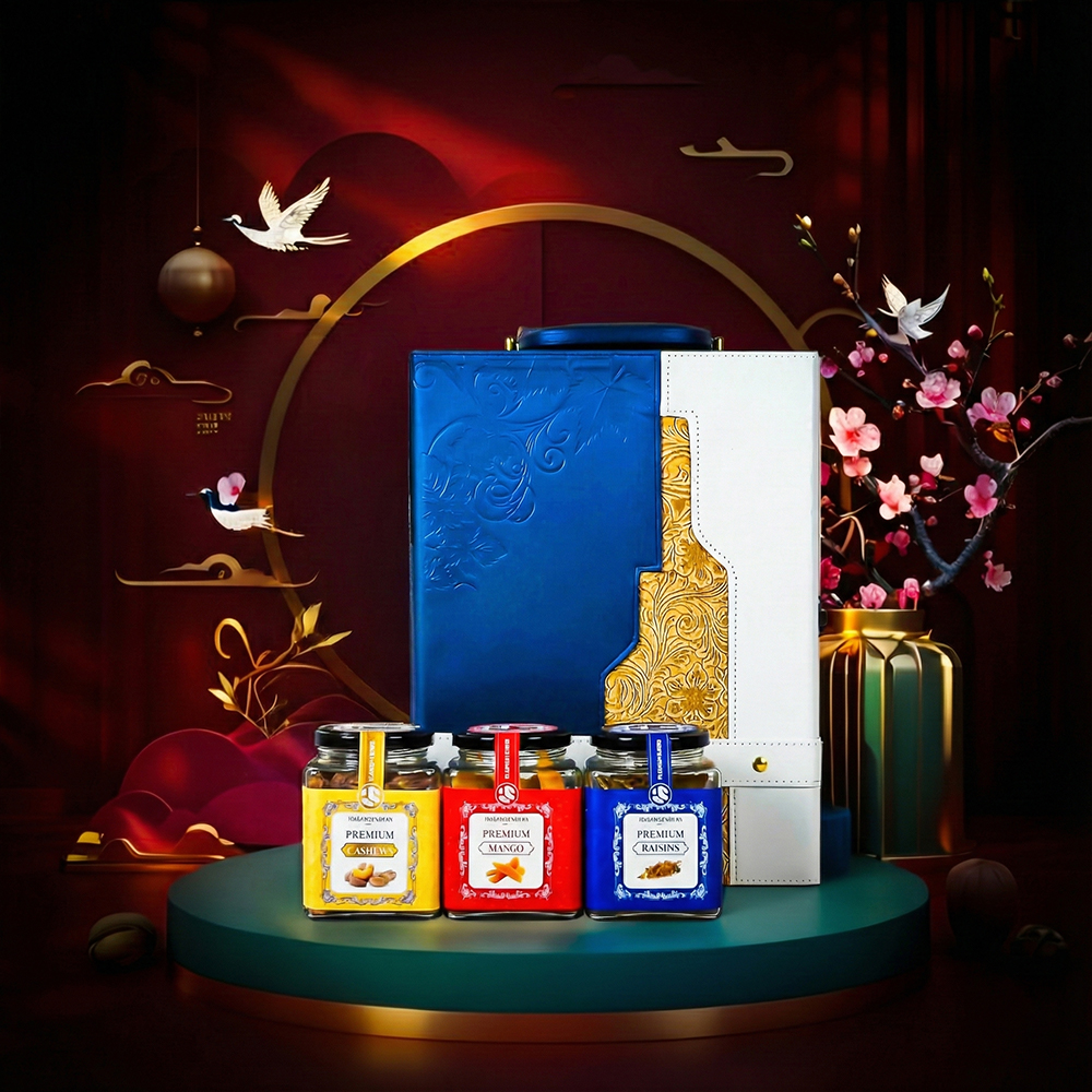 Hộp Quà Tết 2026 – Hộp Da Xanh Quai Xách Dọc bao gồm: