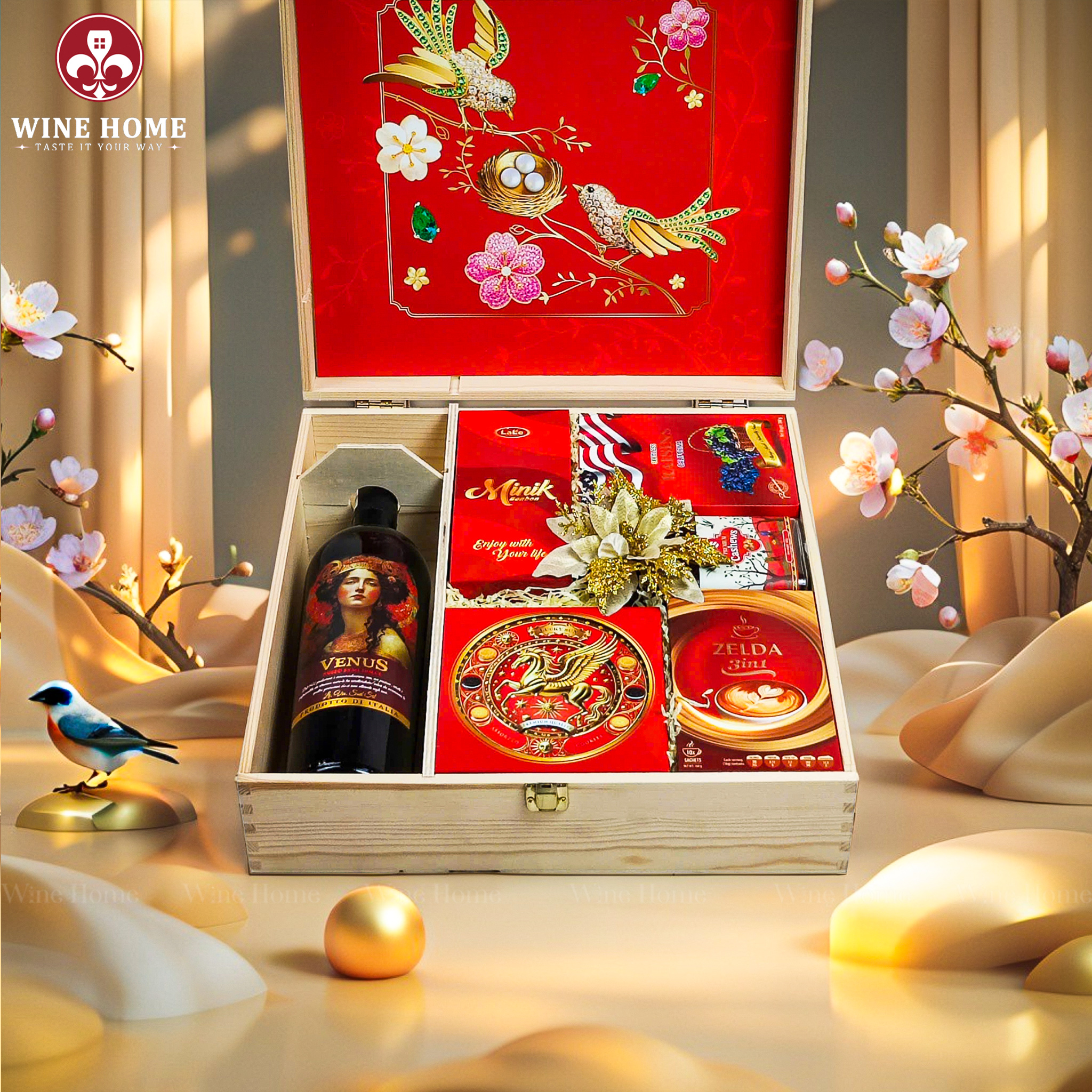 Hộp Quà Tết Xuân Như Ý Hộp Gỗ Đỏ 04 | Quà Tết Cao Cấp 2026