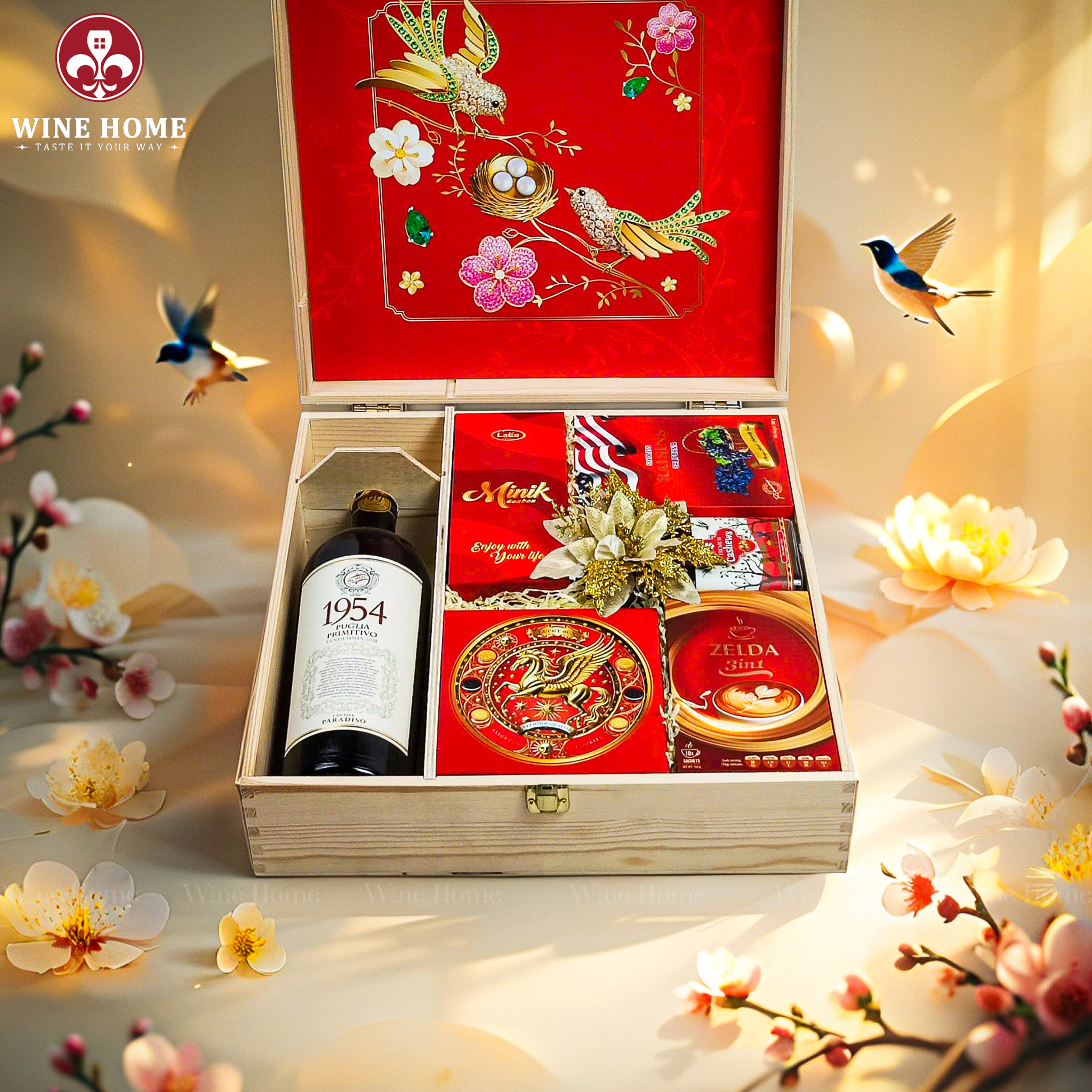 Hộp Quà Tết Xuân Như Ý Hộp Gỗ Đỏ 14 | Quà Tết Cao Cấp 2026
